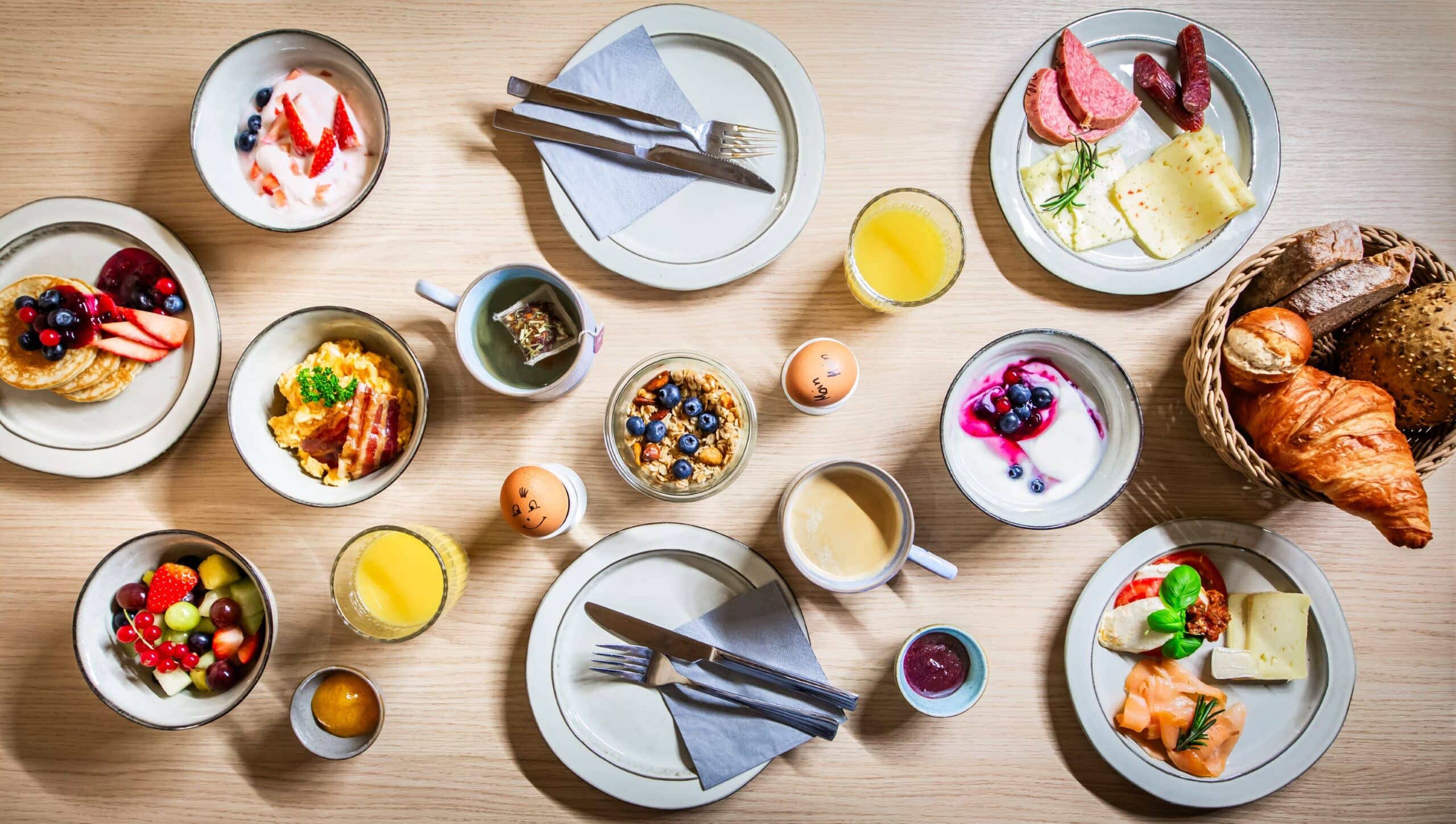 Morgens verwöhnen wir dich mit unserem liebevollen Frühstücksbuffet: Frisch, regional und genau das Richtige vor dem Strandspaziergang. Hier gibt es alles, was du für dein Nordsee-Abenteuer brauchst. Nimm dir Zeit, genieß’ deinen Kaffee in entspannter Atmosphäre und starte gestärkt in den Tag. Unkompliziert, herzlich und einfach lecker.
