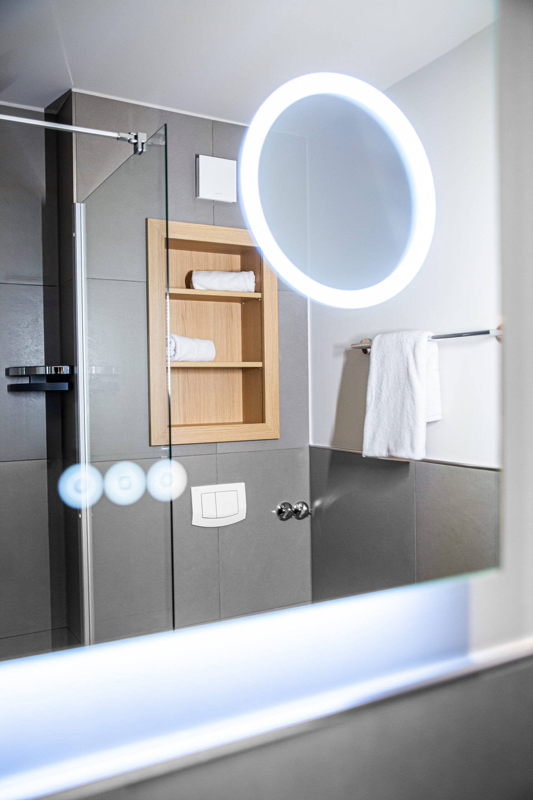 Ja, ein geräumiger Kleiderschrank bietet ausreichend Platz für aller drei Gäste.