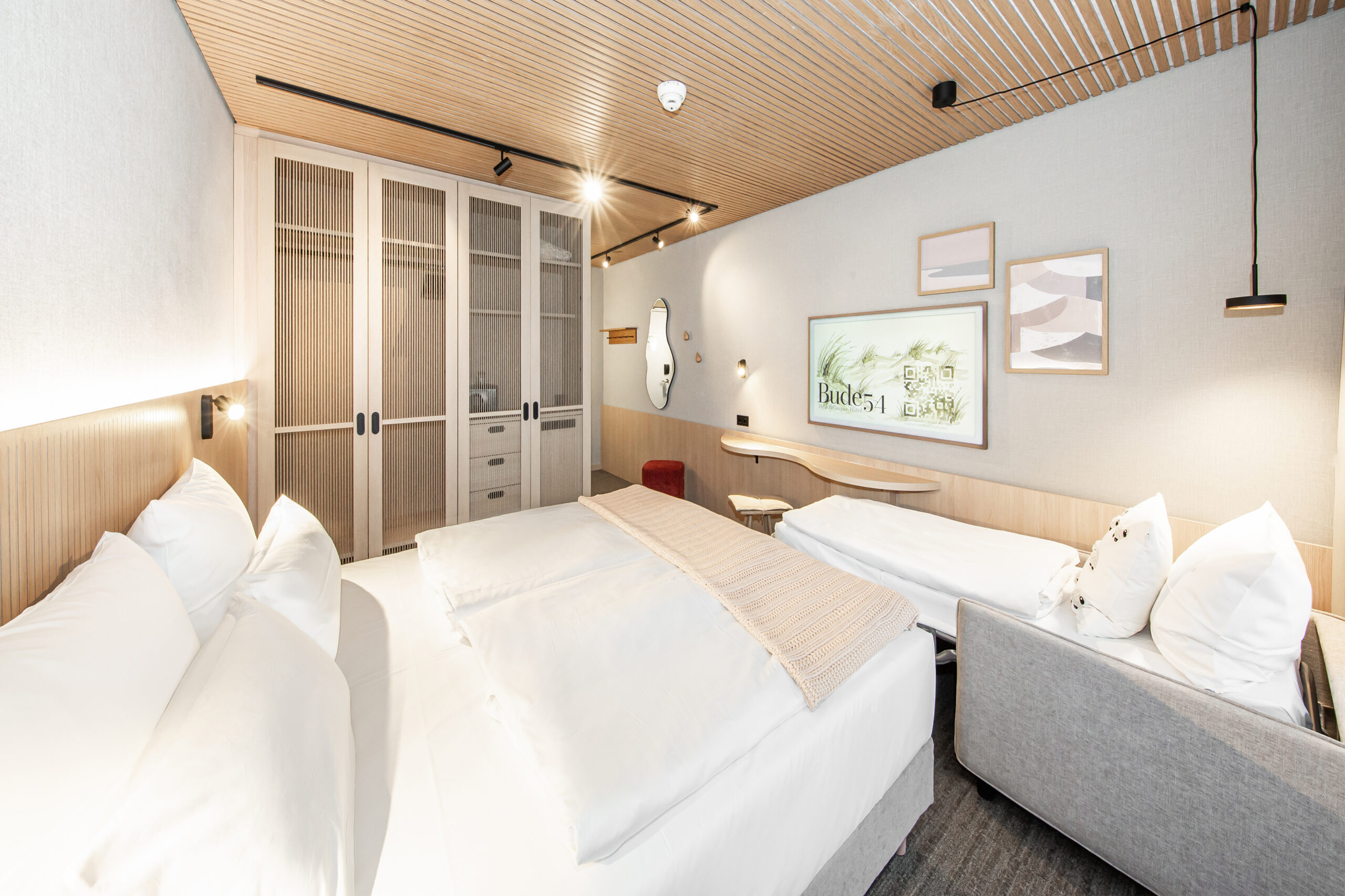 Ist die Bude für Drei dein Platz bei uns? Ihr seid als kleine Crew unterwegs und wollt gemeinsam ankommen. Du suchst einen Ort, der nordischen Style und genug Schlafplätze für euch alle unkompliziert verbindet.